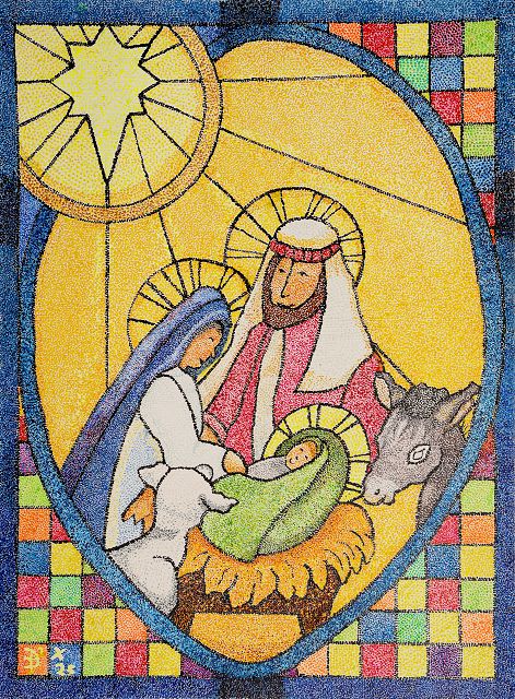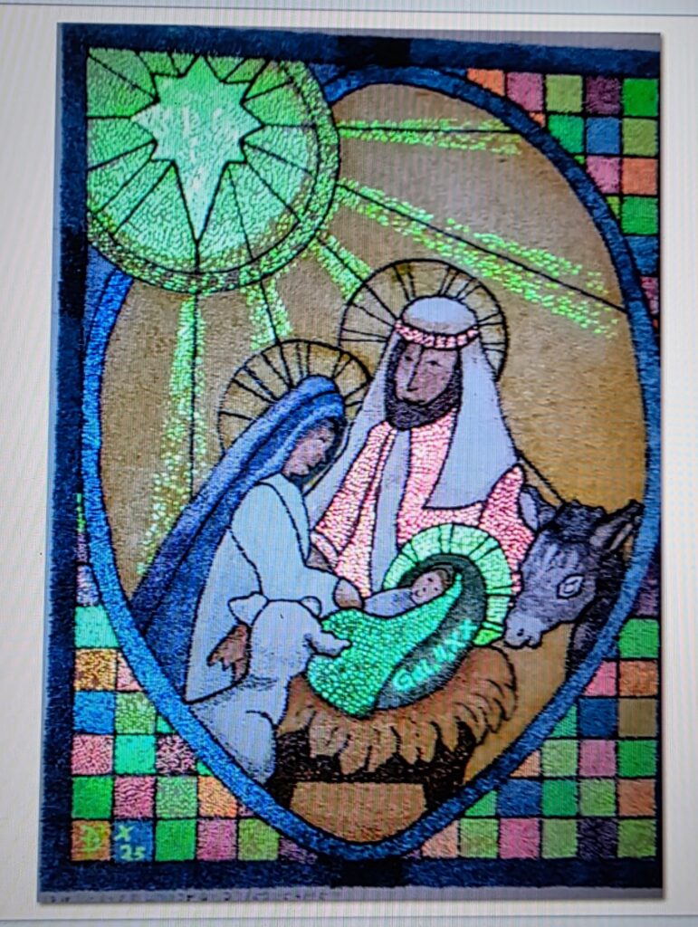Weihnachten kann kommen, auch wenn in diesem Bild bereits einige Andeutungen von Ostern drin stecken. Das große Osterei, die dunkleren Stellen im Rahmen - wenn man sie verbindet, ergeben sie ein großes Kreuz. Unter Schwarzlicht lässt sich noch mehr entdecken, zB. Gal 2,20 Darum lebe nicht mehr ich, sondern Christus lebt in mir! Mein vergängliches Leben auf dieser Erde lebe ich im Glauben an Jesus Christus, den Sohn Gottes, der mich geliebt und sein Leben für mich gegeben hat.
